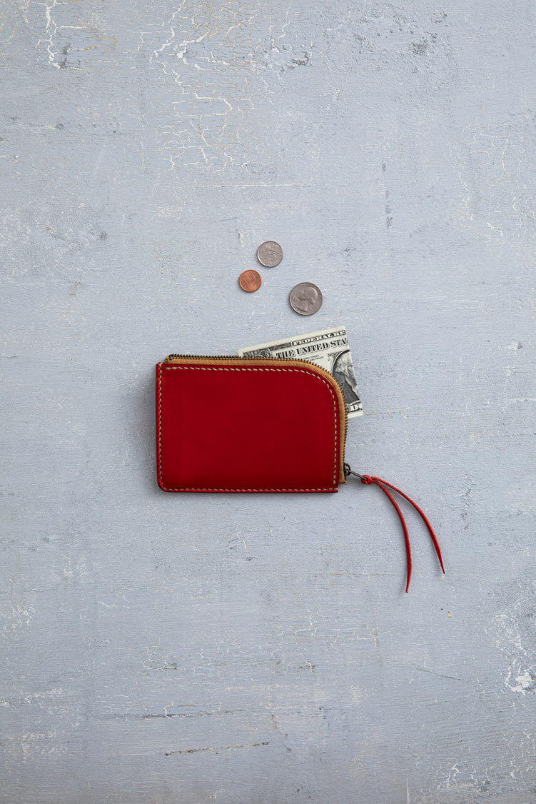 この課題を通して、型紙づくりから仕立てまで、手縫いでつくる基本の工程をしっかり理解することが目標です。小銭入れやマチがついて少し複雑になってきたパーツを一歩一歩ていねいに仕立てて、これまでの課題で習得した技術をおさらいしましょう。新しく「ファスナーの取り扱い」や「革の折り曲げ」「薄い革や柔らかい革の縫い方」を学習します。